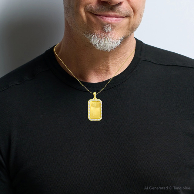 Men's 24K Gold Diamond Dog Tag Pendant | 2.2ct