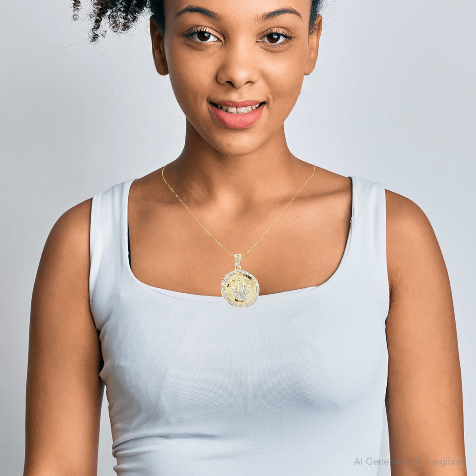 Men's and Women's 10K Gold Natural or Lab-Grown Diamond Crown Pendant | Rolex Style Round Medallion | 3.25ct