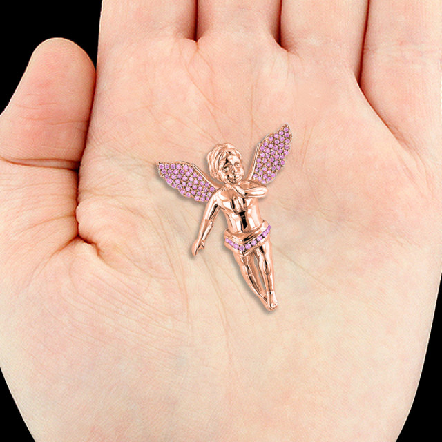 Men's and Women's 14K Gold Pink Diamond Angel Pendant | VS | 0.7ct