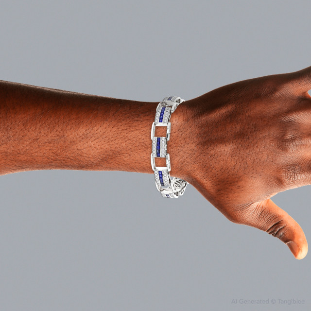 Men's and Women's 14K Gold Sapphire and Diamond Bracelet | Pave Set | Box Lock Clasp | 7.95ct