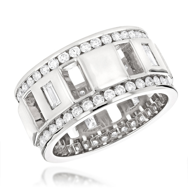 Men's and Women's Baguette and Round Diamond Anniversary Eternity Wedding Ring | 14K Gold | 2.65ct
