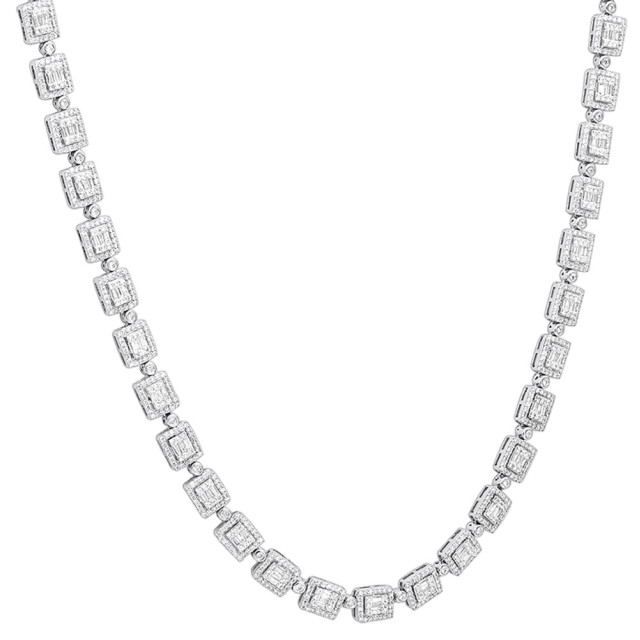 Men's and Women's Diamond Designer Tennis Chain Necklace | 14K Gold | Box Clasp with Safety | 10ct