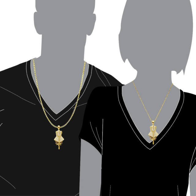 Men's and Women's Round Cut Diamond Praying Hands Rosary Cross Pendant | 18K Gold | 7ct