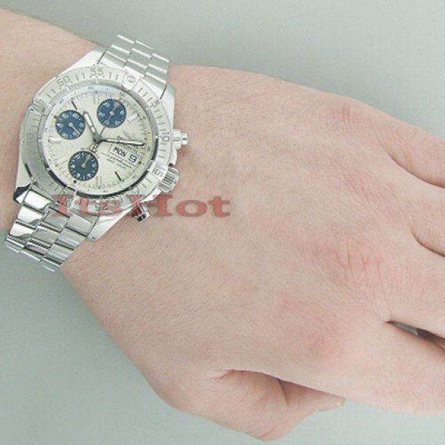 This Men's Breitling Superocean. The case measures 42 mm, and comes with a seller's warranty of months. Also available on custom order with additional options.