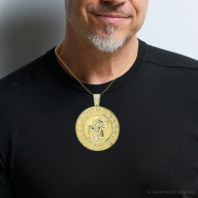 Men's Diamond Aztec Sun Stone Calendar Coin Pendant | VS | 18K Gold | 1ct