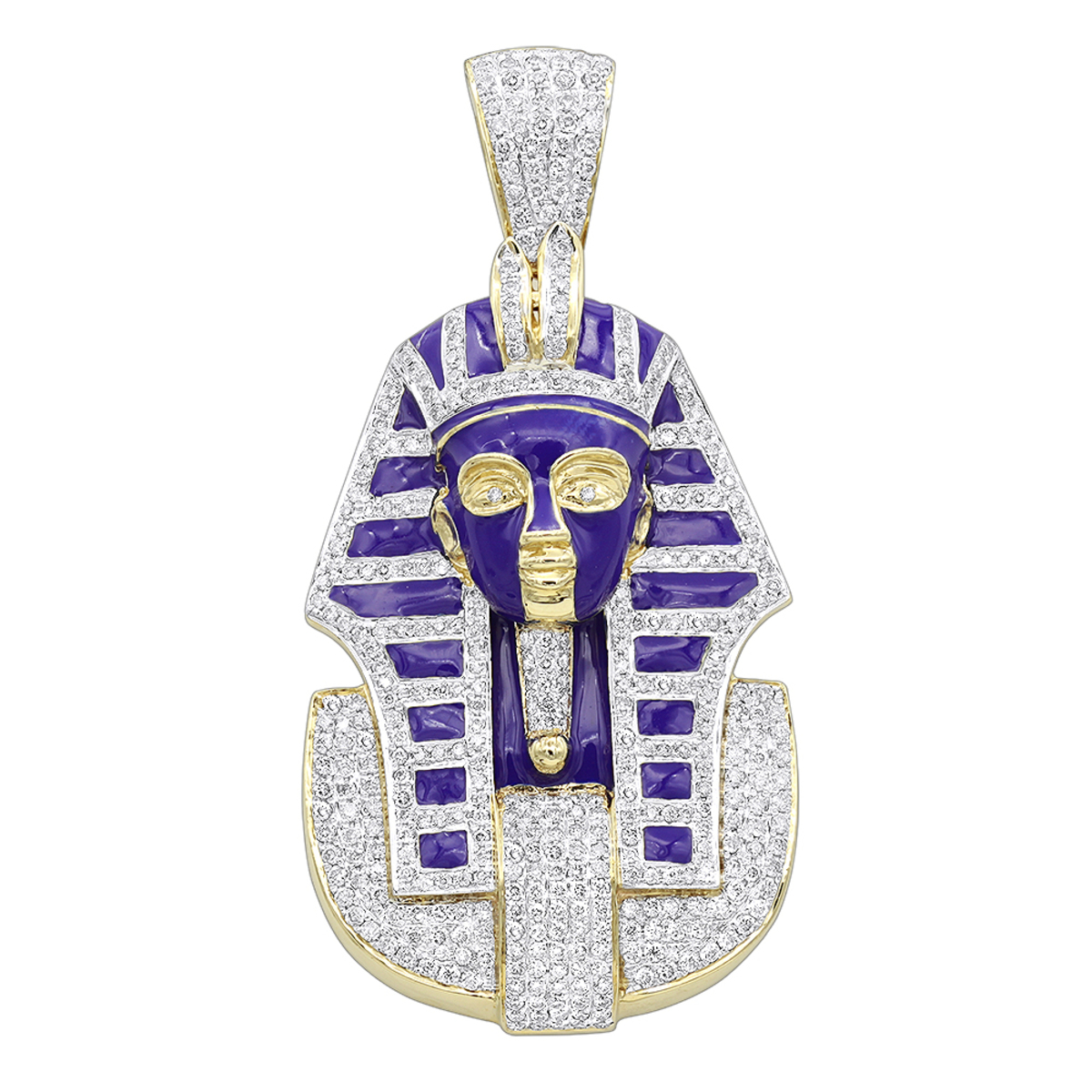 Men's Diamond Egyptian Pharaoh Head Pendant | SI | 14K Gold | 2.38ct