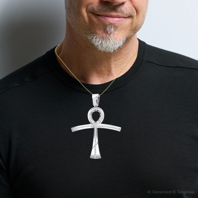 Men's Diamond Symbol of Life Egyptian Ankh Cross Pendant | 14K Gold | 2.5ct