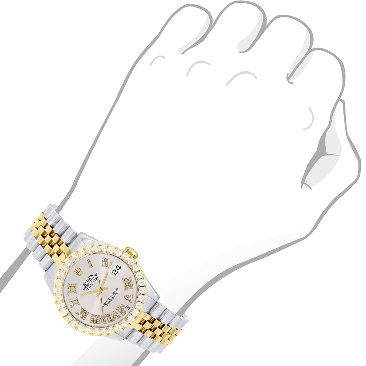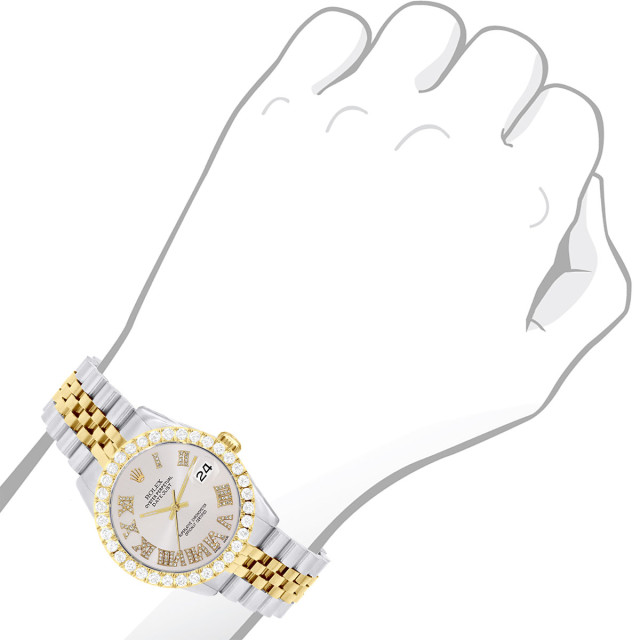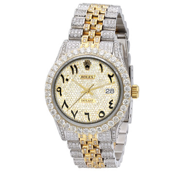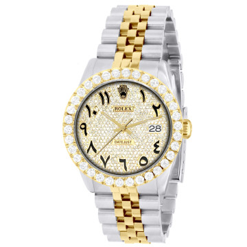 This Men's Two-Tone Rolex Datejust is a luxurious and stylish watch. It features a White/Yellow color scheme, adding sophistication to its design. The watch is made of Gold/Stainless Steel, offering a premium feel. The case measures 36 mm. The bracelet is made of Stainless Steel It features a Jubilee style bracelet for a comfortable fit. The bezel is made of Yellow Gold and is set with White Diamonds. The dial is Smokey White, enhancing its visual appeal. Powered by an Automatic movement, the watch includes functions such as Date Indicator. Offered in Very Good condition, and comes with a seller's warranty of 60 months. Also available on custom order with additional options. These pre-owned Rolex watches are authentic Rolex watches with genuine diamonds, in excellent condition, they are checked for authenticity and basic water resistance. Watches will withstand an occasional rain just fine, but they are not diver's watches and should not be worn in shower or while swimming.