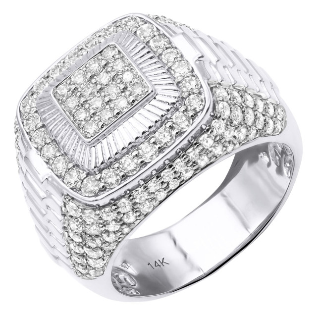 This Men's Diamond Statement ring is made from 14k Gold, weighing 12.6 grams. This Men's Diamond ring features 2.5 carats of White Diamonds and is available in 14k white gold, yellow gold and rose gold as well as 18k gold and platinum as a custom order.