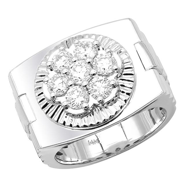 This Men's Diamond Statement ring is made from 14k Gold. This Men's Diamond ring features 2 carats of White Diamonds and is available in 14k white gold, yellow gold and rose gold as well as 18k gold and platinum as a custom order.