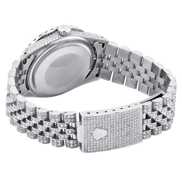 This Men's Bust Down Rolex Datejust is a luxurious and stylish watch. It features a White color scheme, adding sophistication to its design. The watch is made of Stainless Steel, offering a premium feel. The case measures 36 mm. The case is adorned with White s, enhancing its elegance. The bracelet is made of White Stainless Steel and is set with White. It features a Jubilee style bracelet for a comfortable fit. The bezel is made of White Stainless Steel and is set with White Diamonds. The dial is Dark Blue, enhancing its visual appeal. Powered by an Automatic movement, the watch includes functions such as Date Indicator. Offered in Very Good condition, and comes with a seller's warranty of 60 months. Also available on custom order with additional options. These pre-owned Rolex watches are authentic Rolex watches with genuine diamonds, in excellent condition, they are checked for authenticity and basic water resistance. Watches will withstand an occasional rain just fine, but they are not diver's watches and should not be worn in shower or while swimming.