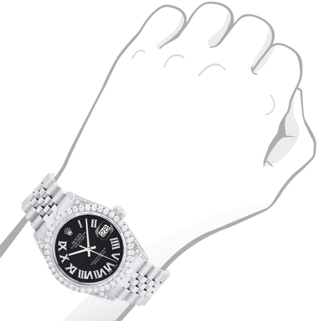 Men's Stainless Steel Diamond Watch | Rolex Oyster Perpetual Datejust 36 mm | Roman Numerals | Black Dial