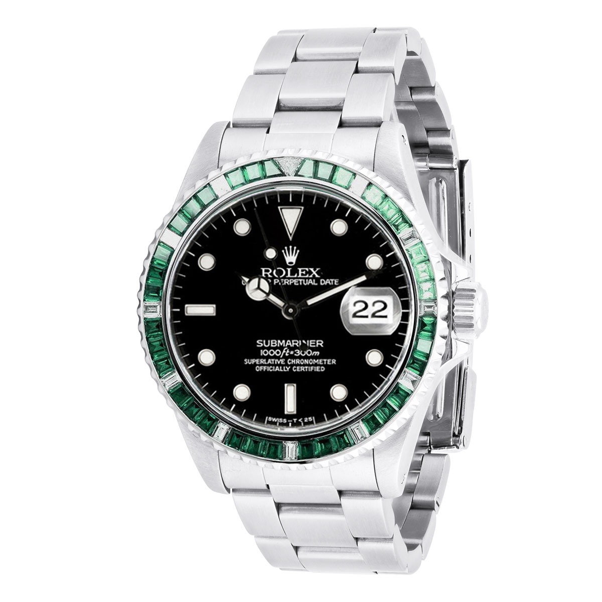 This Men's Rolex Submariner is a luxurious and stylish watch. The watch is made of Stainless Steel, offering a premium feel. The case measures 40 mm. The bracelet is made of Stainless Steel It features an Oyster style bracelet for a comfortable fit. The bezel is made of Stainless Steel and is set with White Diamonds. The dial is Black, enhancing its visual appeal. Powered by an Automatic movement. Offered in Good condition, and comes with a seller's warranty of 60 months. Also available on custom order with additional options. These pre-owned Rolex watches are authentic Rolex watches with genuine diamonds, in excellent condition, they are checked for authenticity and basic water resistance. Since the watch is decorated with diamonds and gemstones, it is not recommended to shower or swim with the watch on.