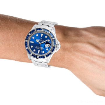 This Men's Rolex Submariner is a luxurious and stylish watch. The watch is made of Stainless Steel, offering a premium feel. The case measures 40 mm. The bracelet is made of Stainless Steel It features an Oyster style bracelet for a comfortable fit. The bezel is made of Stainless Steel and is set with White Diamonds. The dial is White, enhancing its visual appeal. Powered by an Automatic movement. Offered in Good condition, and comes with a seller's warranty of 60 months. Also available on custom order with additional options. These pre-owned Rolex watches are authentic Rolex watches with genuine diamonds, in excellent condition, they are checked for authenticity and basic water resistance. Watches will withstand an occasional rain just fine, but they are not diver's watches and should not be worn in shower or while swimming.