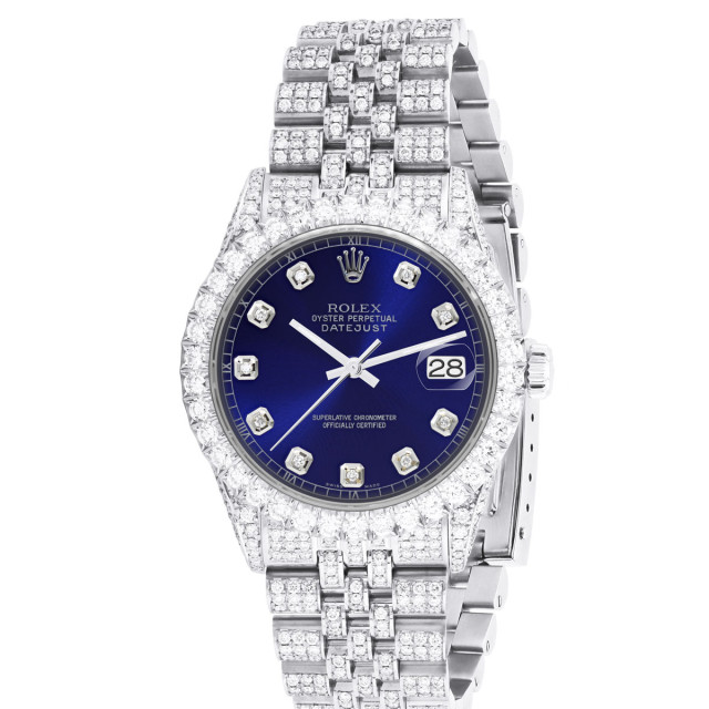 Men's Stainless Steel Iced-Out Diamond Watch | Rolex Datejust 36 mm Blue Dial