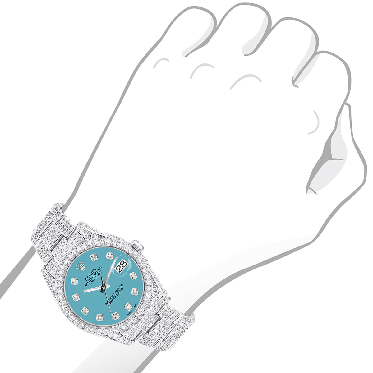 Men's Stainless Steel Iced-Out Diamond Watch | Rolex Datejust 41 mm Turquoise Dial