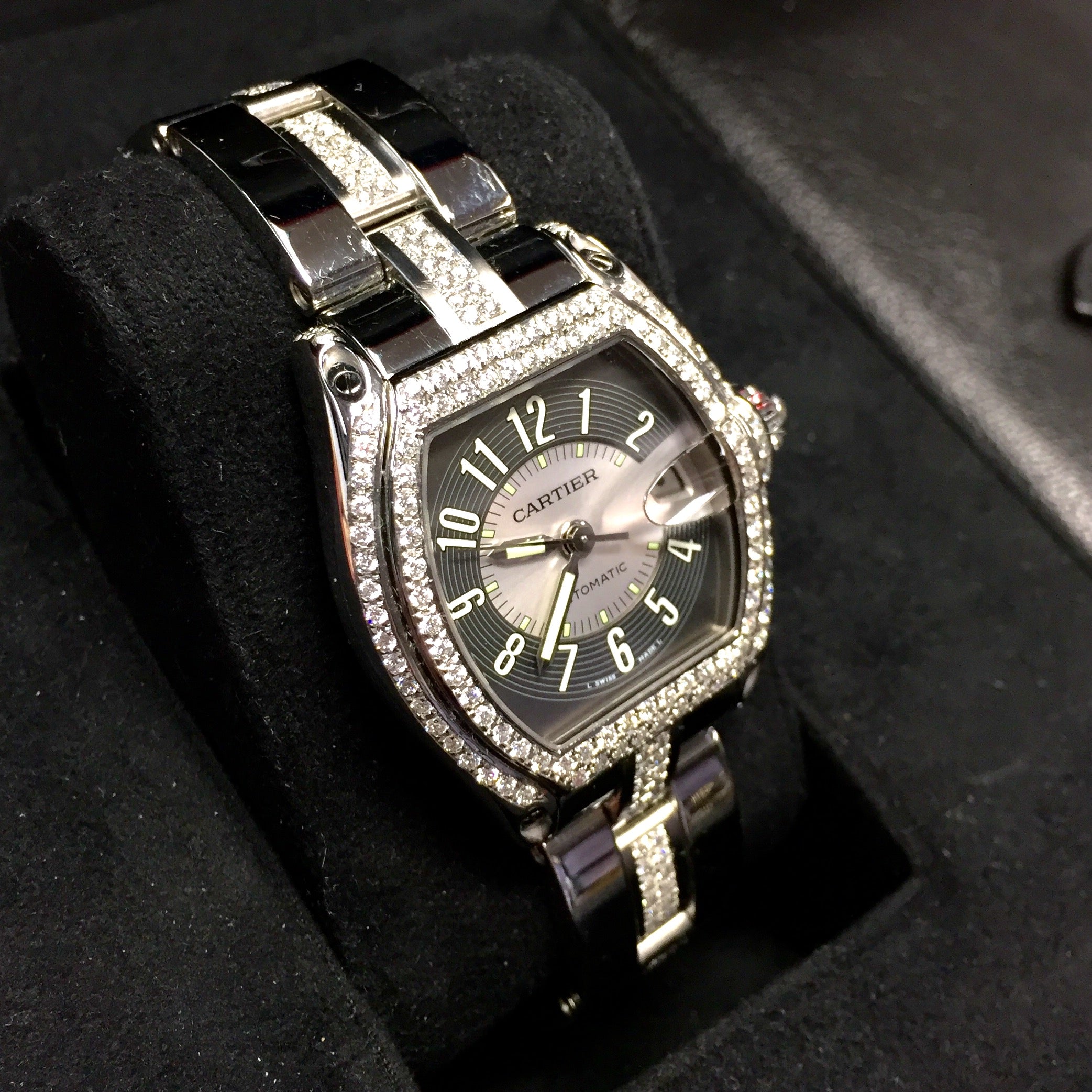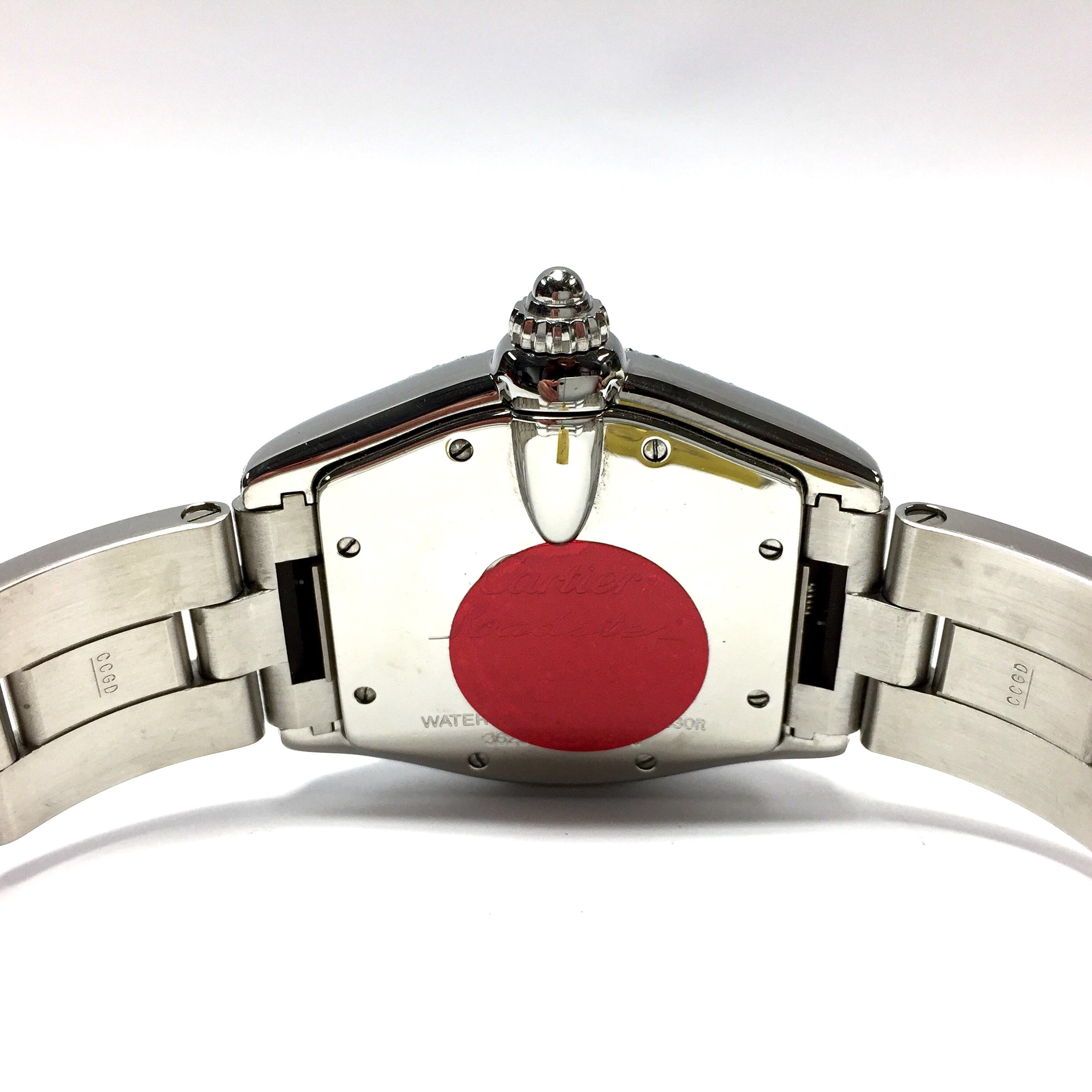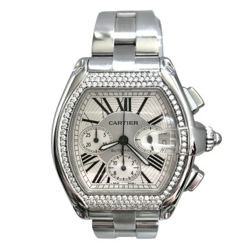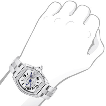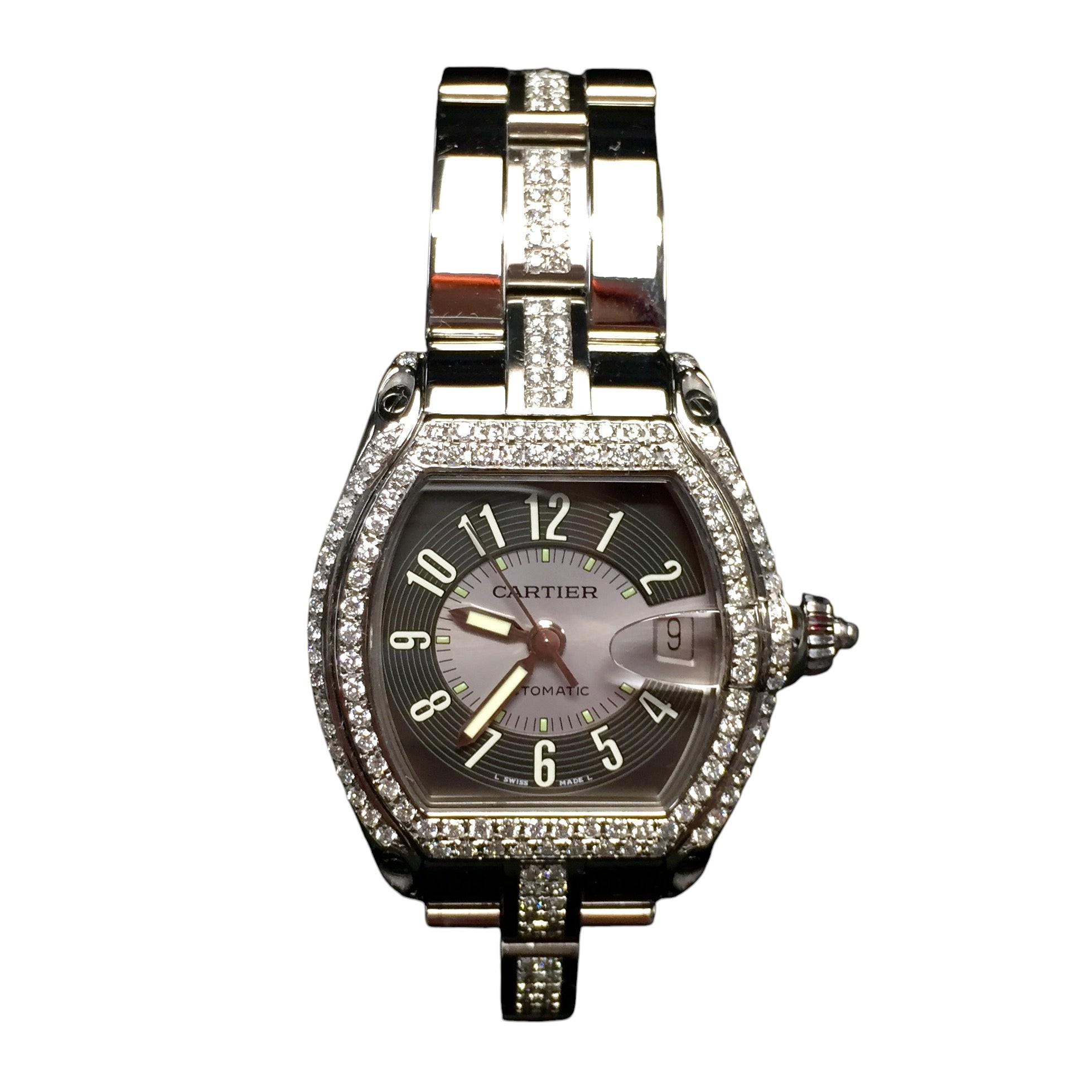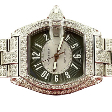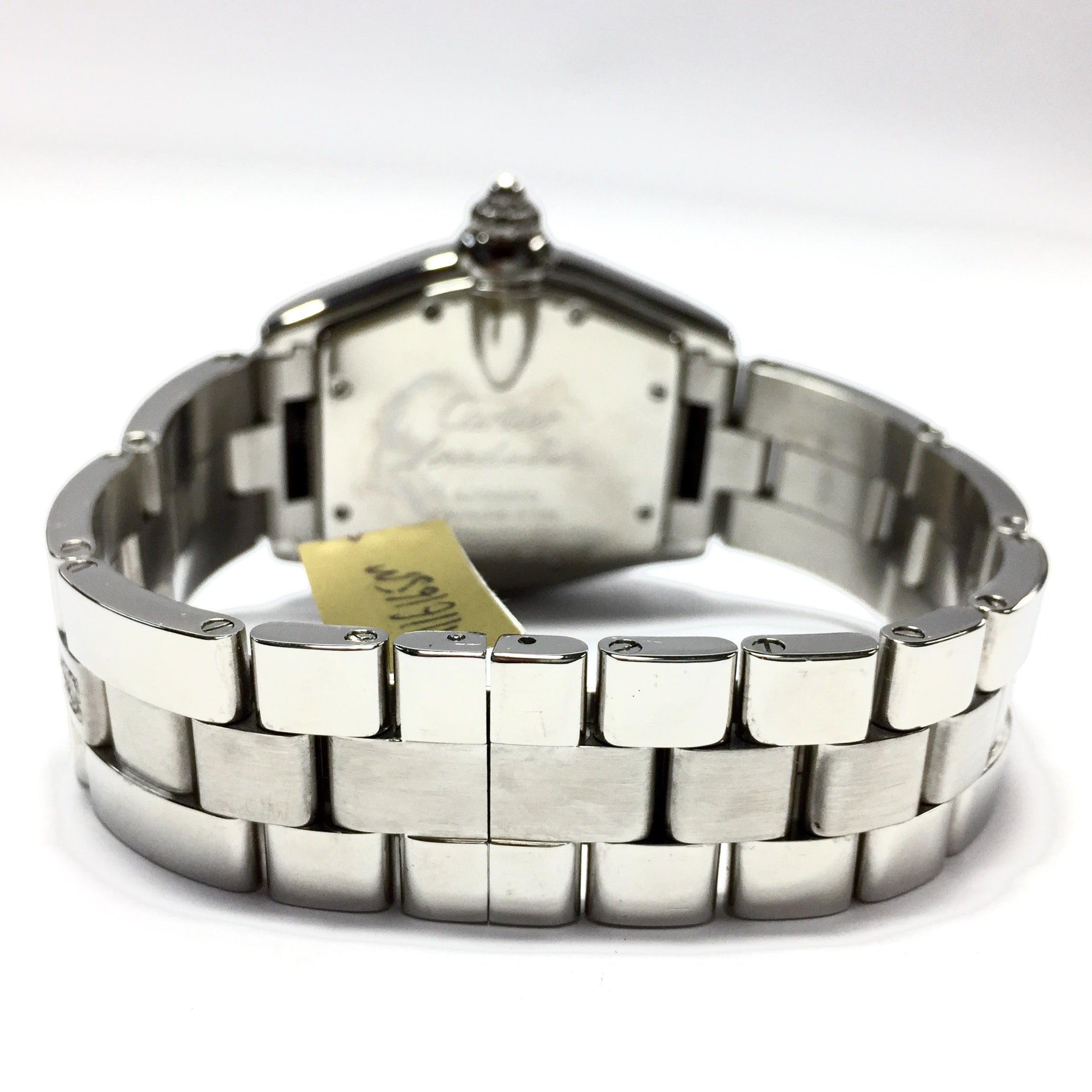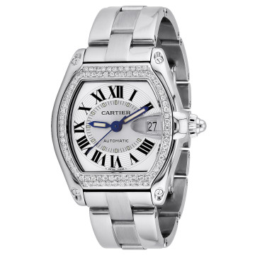 This Men's Cartier Roadster is a luxurious and stylish watch. The watch is made of Stainless Steel, offering a premium feel. The case measures 38 mm. The bracelet is made of Stainless Steel. The bezel is made of Stainless Steel and is set with White. The dial is Black Silver, enhancing its visual appeal. Powered by an Automatic movement, the watch includes functions such as Date Indicator. Offered in Good condition, and comes with a seller's warranty of 60 months. Also available on custom order with additional options.