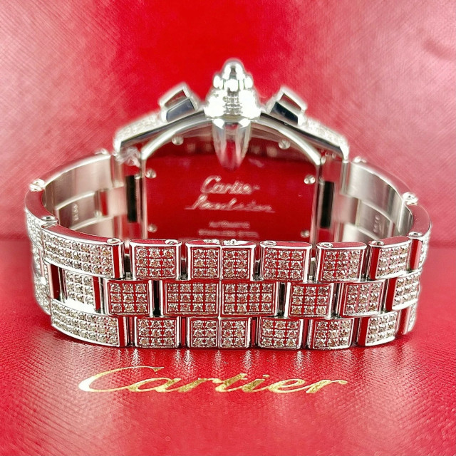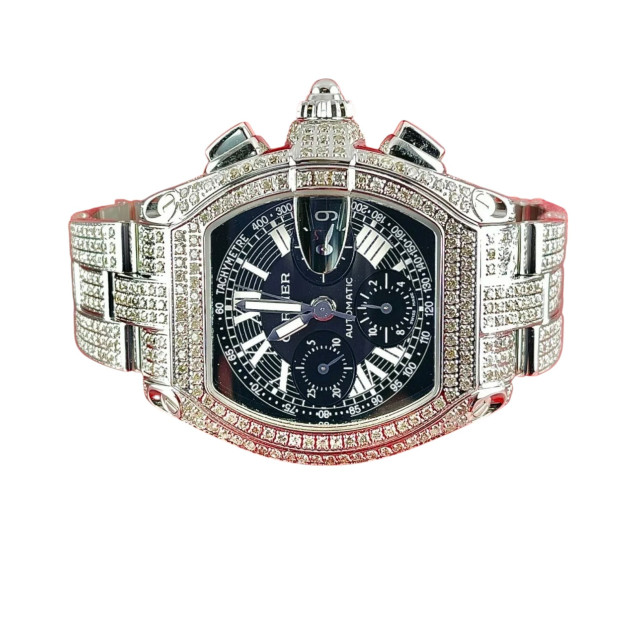 This Men's Cartier Roadster is a luxurious and stylish watch. The watch is made of Stainless Steel, offering a premium feel. The case measures 42 mm. The bracelet is made of Stainless Steel. The bezel is made of Stainless Steel and is set with White. The dial is Black, enhancing its visual appeal. Powered by an Automatic movement, the watch includes functions such as Date Indicator. Offered in Good condition, and comes with a seller's warranty of 60 months. Also available on custom order with additional options.