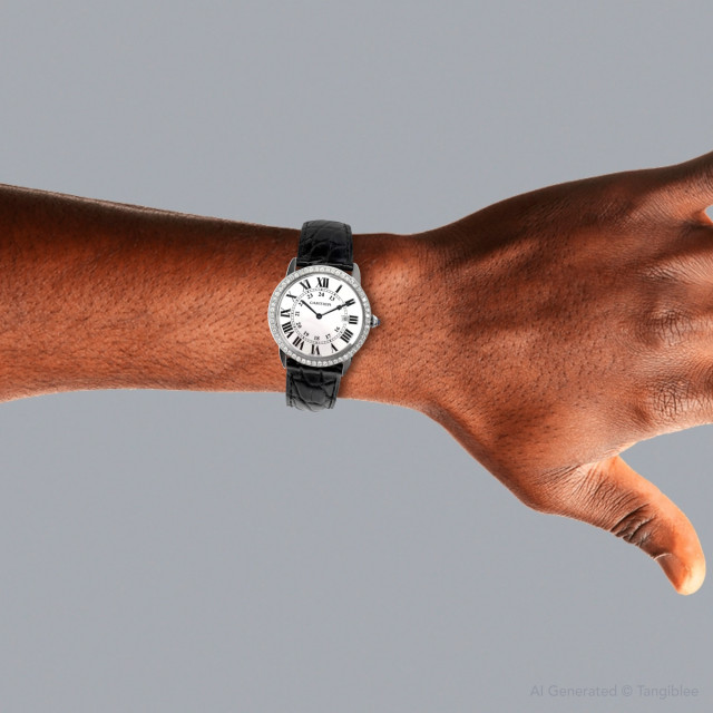 This Men's Cartier Ronde Solo is a luxurious and stylish watch. The watch is made of Stainless Steel, offering a premium feel. The case measures 36 mm. The bracelet is made of Black Genuine Leather and is set with White. The dial is Silver, enhancing its visual appeal. Powered by a Quartz movement. Offered in Good condition, and comes with a seller's warranty of 60 months. Also available on custom order with additional options. Please note this Cartier watch is pre-owned, in excellent condition, the diamonds are high quality, natural diamonds, set by our master craftsmen, watch box might show signs of wear (watch itself will be in perfect condition), comes with a 5 year warranty from ItsHot.