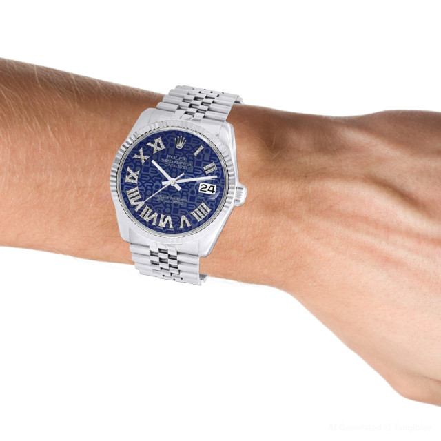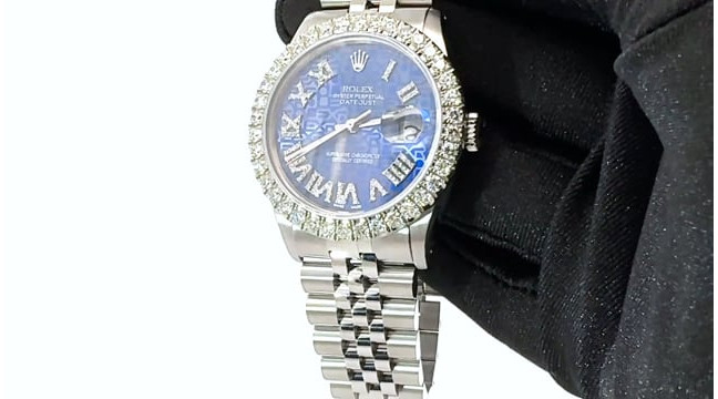 This Men's Rolex Datejust is a luxurious and stylish watch. It features a White color scheme, adding sophistication to its design. The watch is made of Stainless Steel, offering a premium feel. The case measures 36 mm. The bracelet is made of White Stainless Steel It features a Jubilee style bracelet for a comfortable fit. The bezel is made of White Stainless Steel. The dial is Blue Print, enhancing its visual appeal. Powered by an Automatic movement, the watch includes functions such as Date Indicator. Offered in Very Good condition, and comes with a seller's warranty of 60 months. Also available on custom order with additional options. These pre-owned Rolex watches are authentic Rolex watches with genuine diamonds, in excellent condition, they are checked for authenticity and basic water resistance. Watches will withstand an occasional rain just fine, but they are not diver's watches and should not be worn in shower or while swimming.