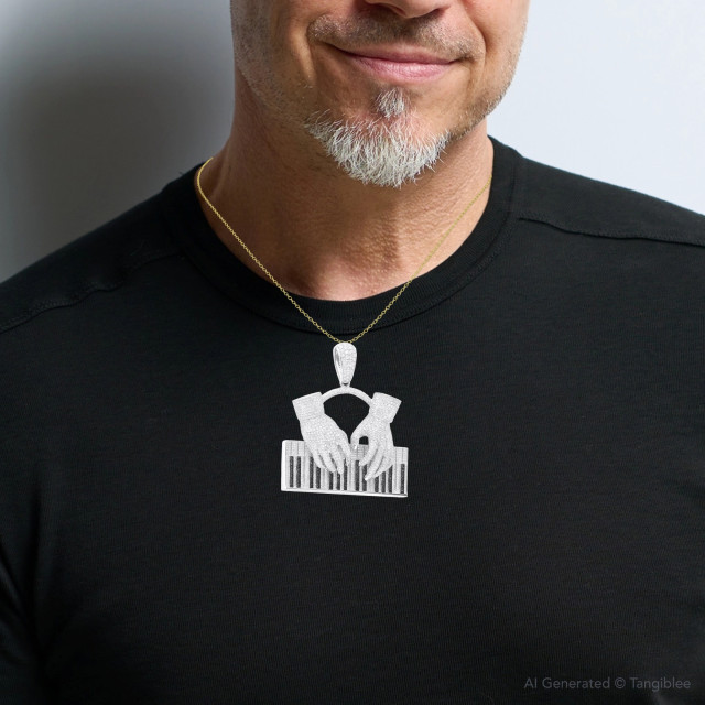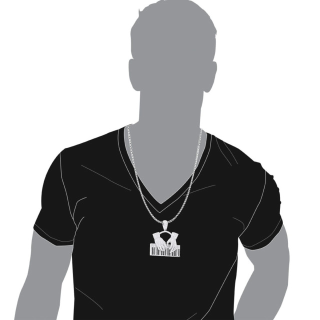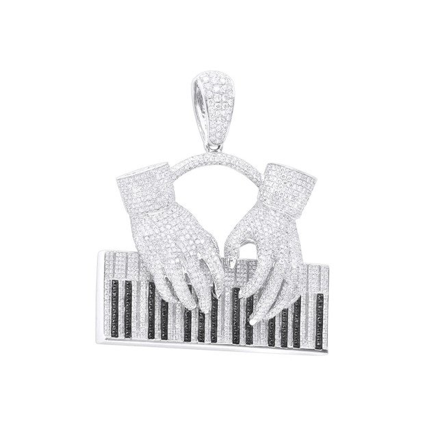 Men's White Black Diamond Piano Pendant | VS | 14K Gold | 15.21ct