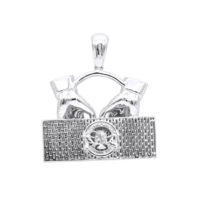 This Men's Diamond pendant is made from 14k Gold, weighing 86.5 grams and is 65 mm wide. This Men's Diamond pendant is designed in a shape and features 15.21 carats of White Diamonds, and is available in 14k white gold, yellow gold and rose gold as well as 18k gold and platinum as a custom order.