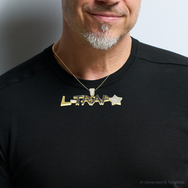 This Men's Diamond pendant is made from 18k Gold, weighing 68.5 grams and is 110 mm wide. This Men's Diamond pendant is designed in a shape and features 6 carats of White Diamonds, and is available in 18k white gold, yellow gold and rose gold as well as 18k gold and platinum as a custom order.