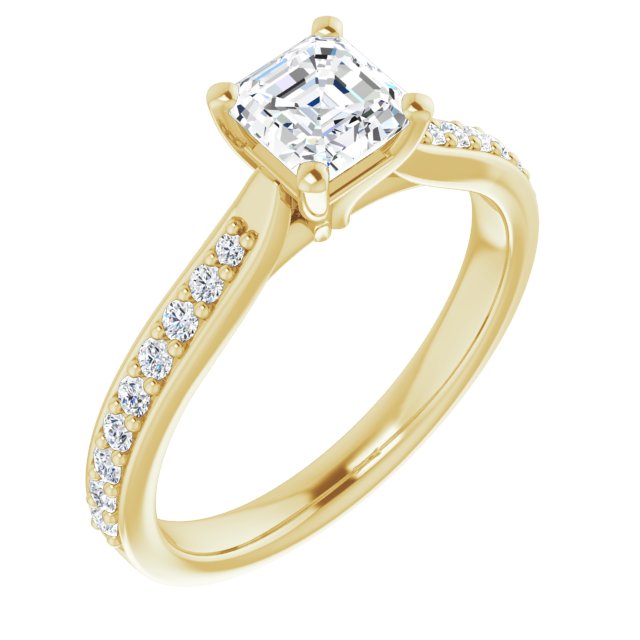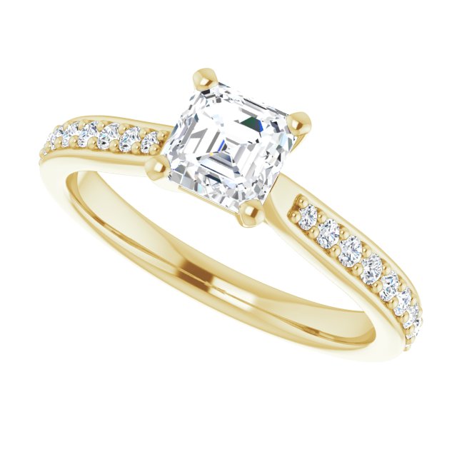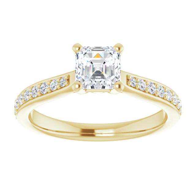 Mia Women's Asscher and Round Natural Diamond Thin Solitaire Engagement Ring | 14K Gold