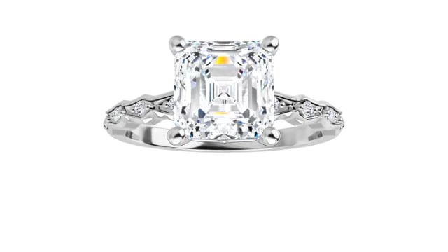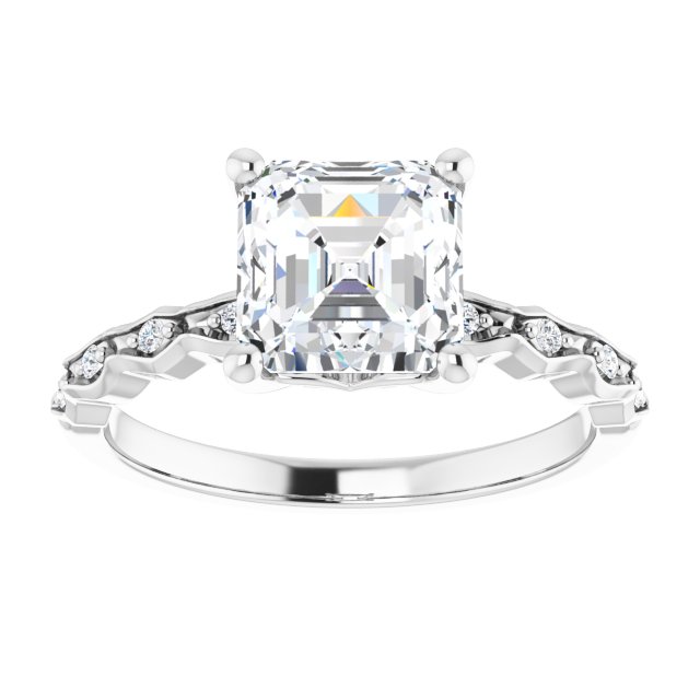 Molly Women's Asscher and Round Natural Diamond Accented Thin Engagement Ring | 14K Gold | 2ct