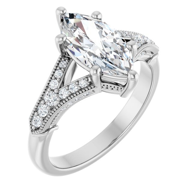 Morgan Women's 14K Gold Marquise and Round Cut Lab-Grown Diamond Accented Thin Engagement Ring | Prong Pinpoint Set | 2ct