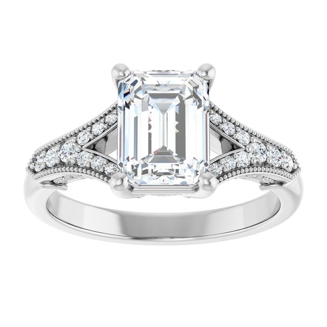 Morgan Women's Emerald and Round Lab-Grown Diamond Accented Thin Engagement Ring | 14K Gold | VS1 | 2ct