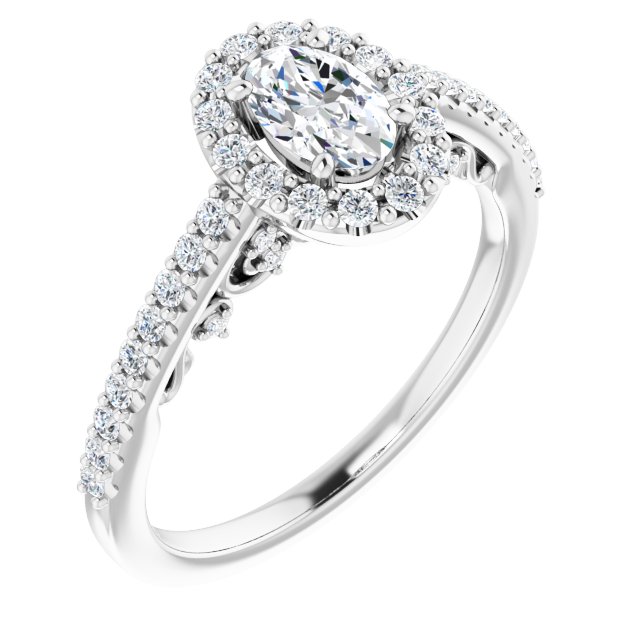 Natalie Women's 14K Gold Oval and Round Cut Natural Diamond Engagement Ring | Prong Shared Set