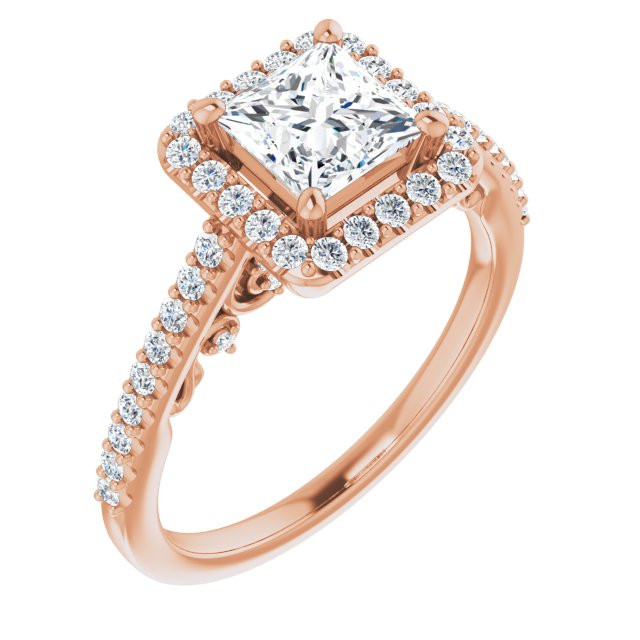Natalie Women's 14K Gold Princess and Round Cut Natural Diamond Engagement Ring | Prong Shared Set | 1ct