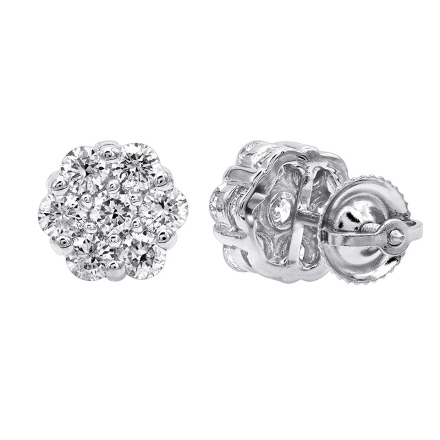Natural or Lab-Grown Diamond Cluster Earrings for Men and Women | Screw Back | 14K Gold | 1.2ct