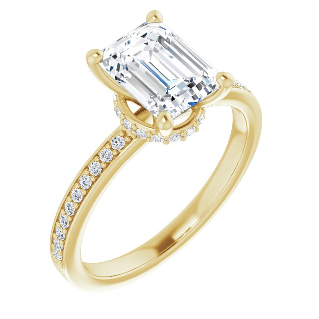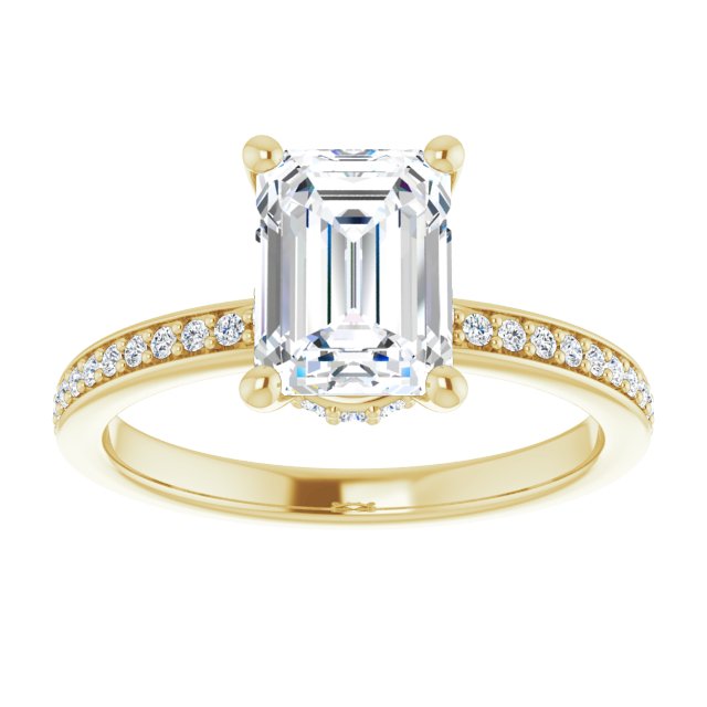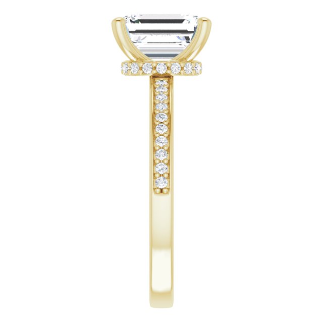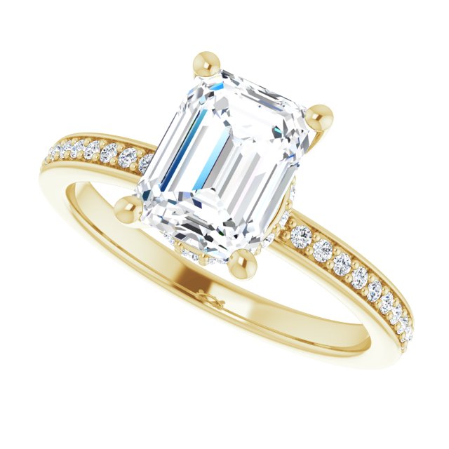 Nicole Women's 14K Gold Emerald and Round Cut Lab-Grown Diamond Accented Thin Engagement Ring | Prong Pinpoint Set | 2ct