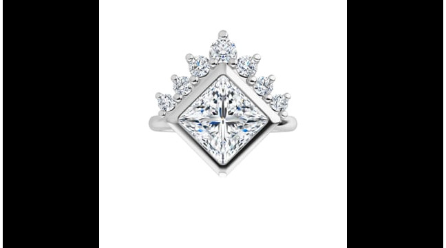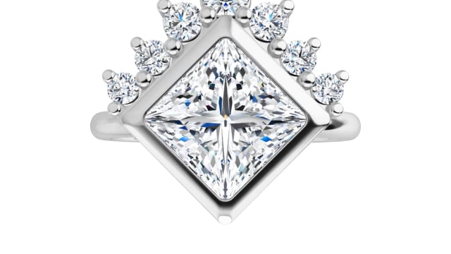 Nicole Women's 14K Gold Princess and Round Cut Lab-Grown Diamond Accented Thin Engagement Ring | Prong Pinpoint Set | 2ct