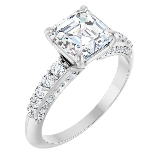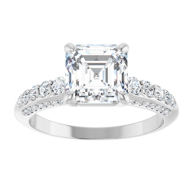 Nora Women's Asscher and Round Natural Diamond Accented Engagement Ring | 14K Gold | 5ct