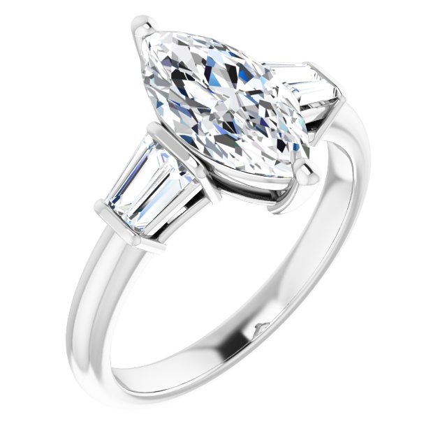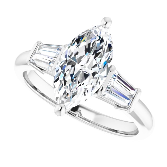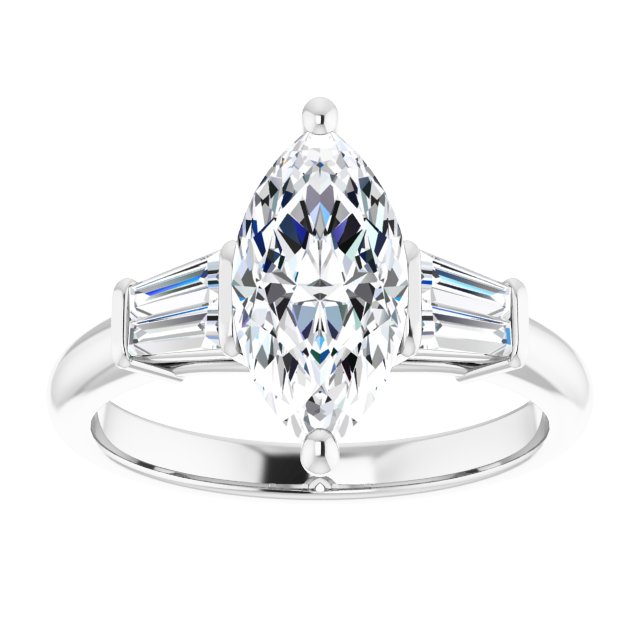 Nova Women's 14K Gold Tapered Baguette and Marquise Cut Natural Diamond Accented Engagement Ring | Prong Bar Set | 2ct