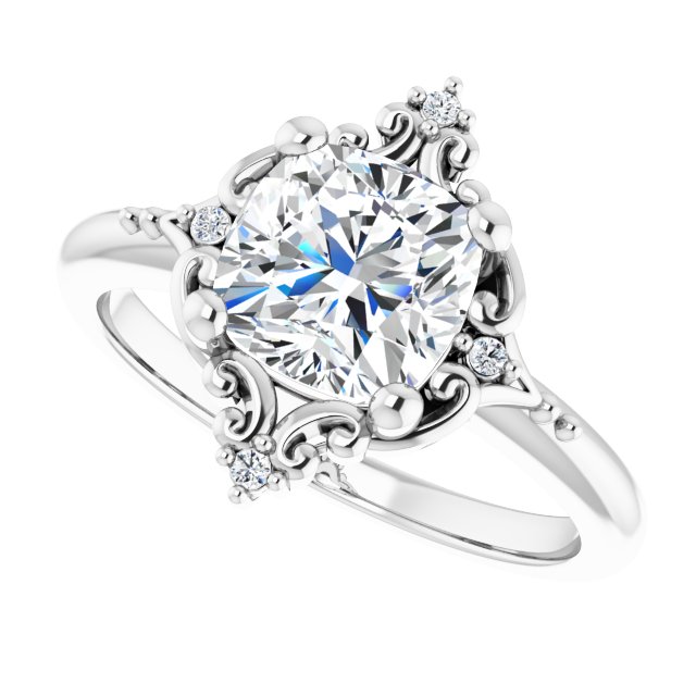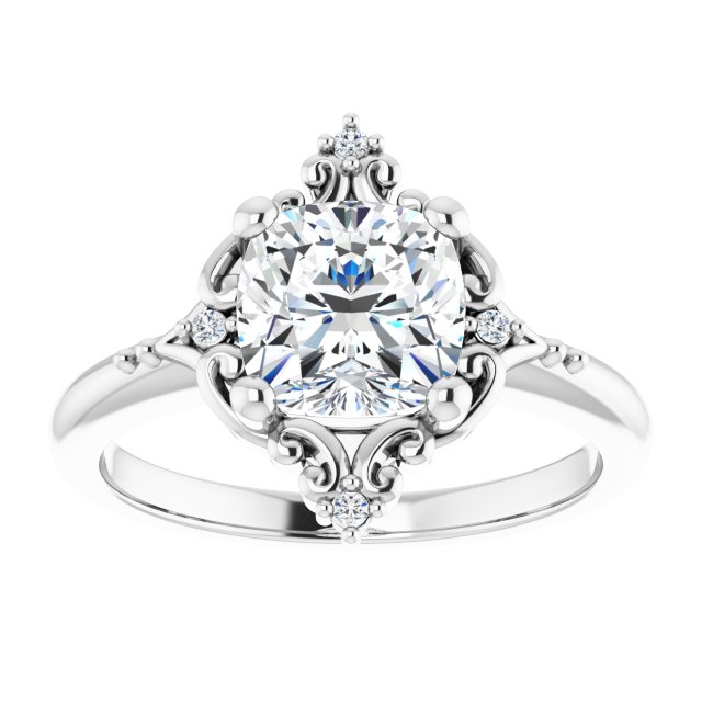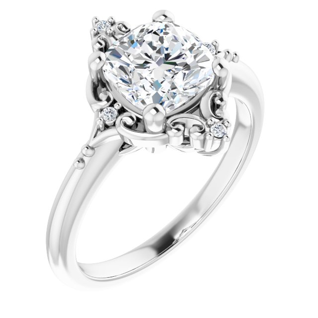 Octavia Women's 14K Gold Cushion and Round Cut Lab-Grown Diamond Accented Thin Engagement Ring | Prong Set | 2ct