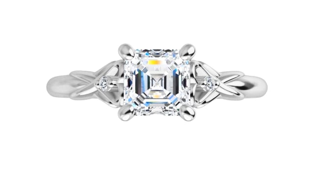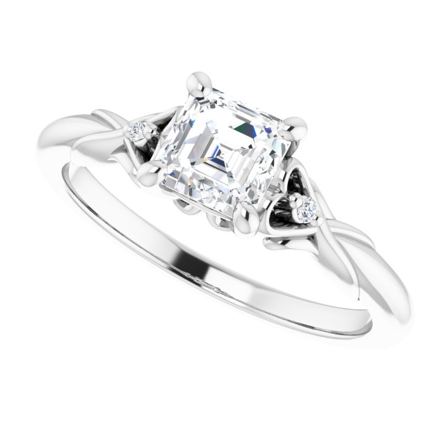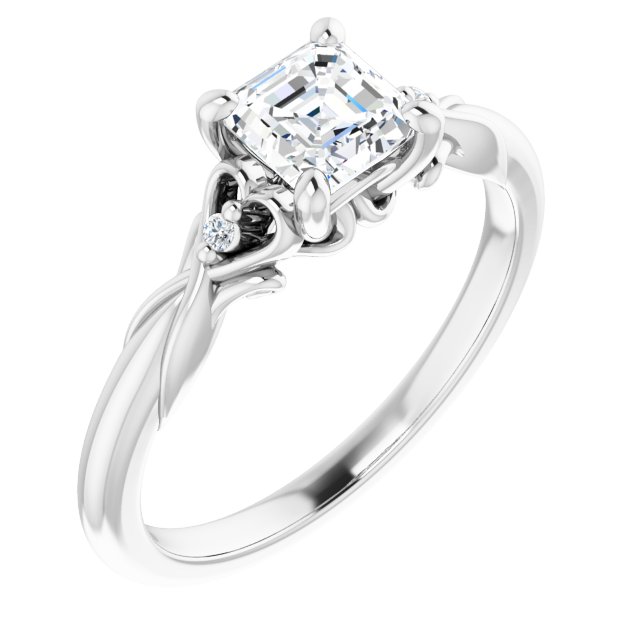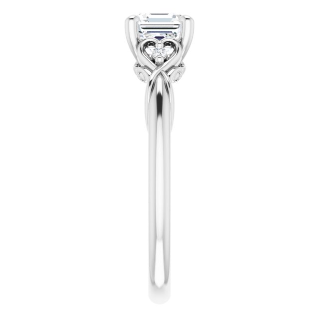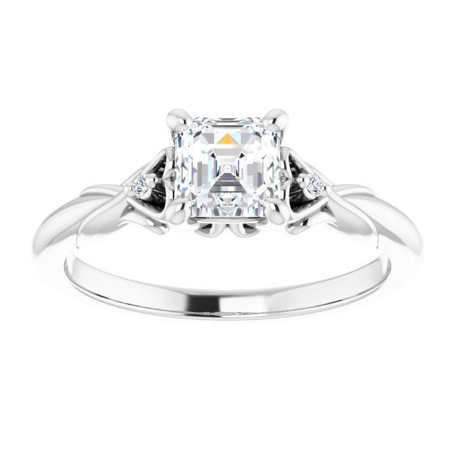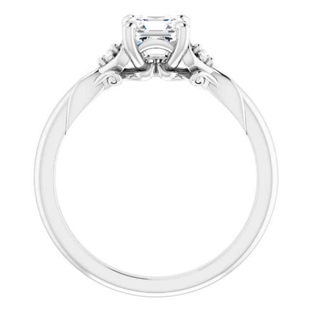 Olive Women's 14K Gold Asscher and Round Cut Natural Diamond Accented Thin Engagement Ring | Prong Set