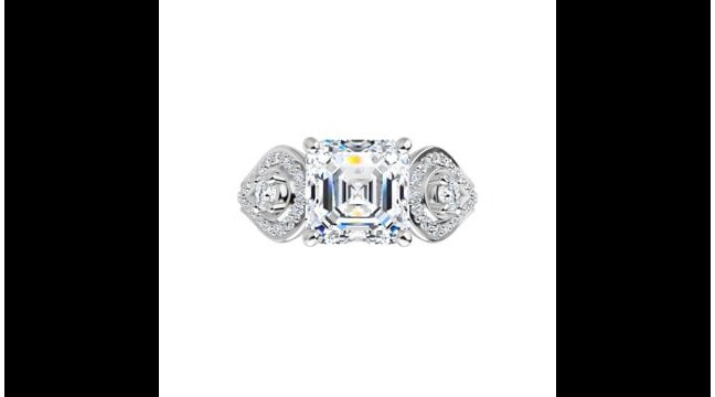 Ophelia Women's 14K Gold Asscher and Round Cut Lab-Grown Diamond Accented Thin Engagement Ring | Prong Pinpoint Set | 2ct