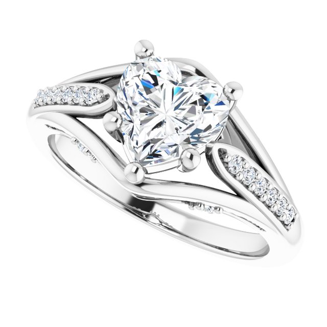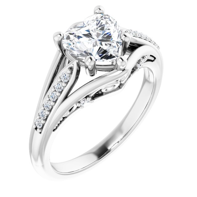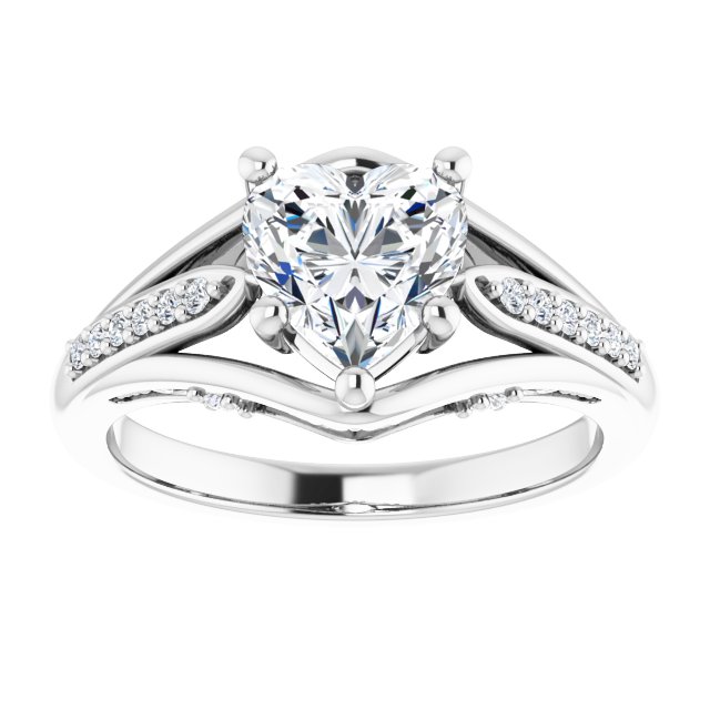 Ophelia Women's 14K Gold Heart and Round Cut Natural Diamond Accented Thin Engagement Ring | Prong Pinpoint Set | 1ct