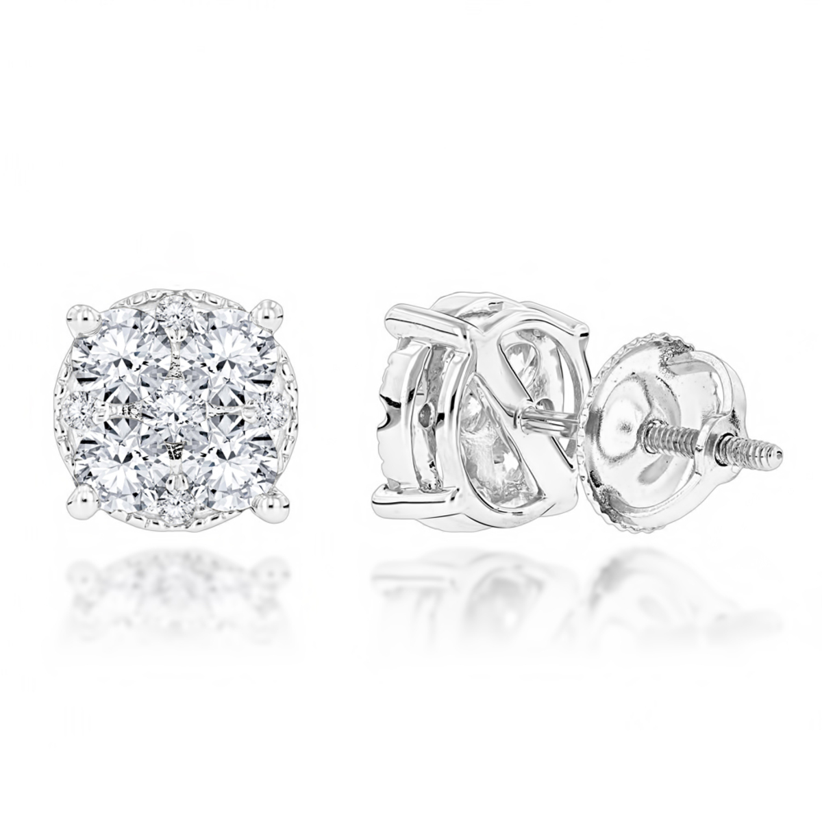 Pave Cut Diamond Cluster Earrings for Men and Women | 14K Gold | Screw Back | 1.2ct