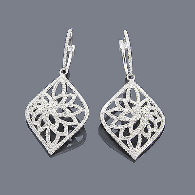 These Women's Diamond back earrings are made from 14k Gold, weigh 7 grams, and measure 20 mm in width. These Women's Diamond earrings feature 1.35 carats of White Diamonds are available in 14k white gold, yellow gold and rose gold as well as 18k gold and platinum as a custom order.