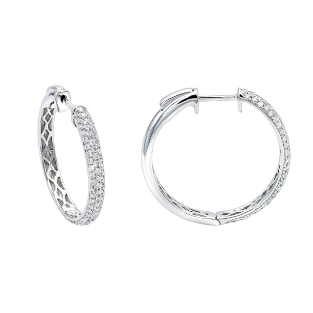 Pave Cut Diamond Hoop Earrings for Women | 14K Gold | Hinged Back | 0.9ct