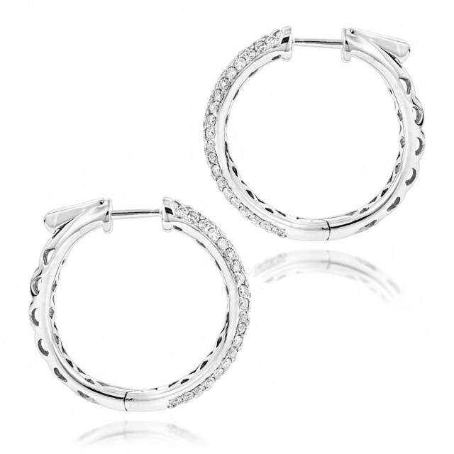 Pave Cut Diamond Hoop Earrings for Women | 14K Gold | Hinged Back | 1.75ct