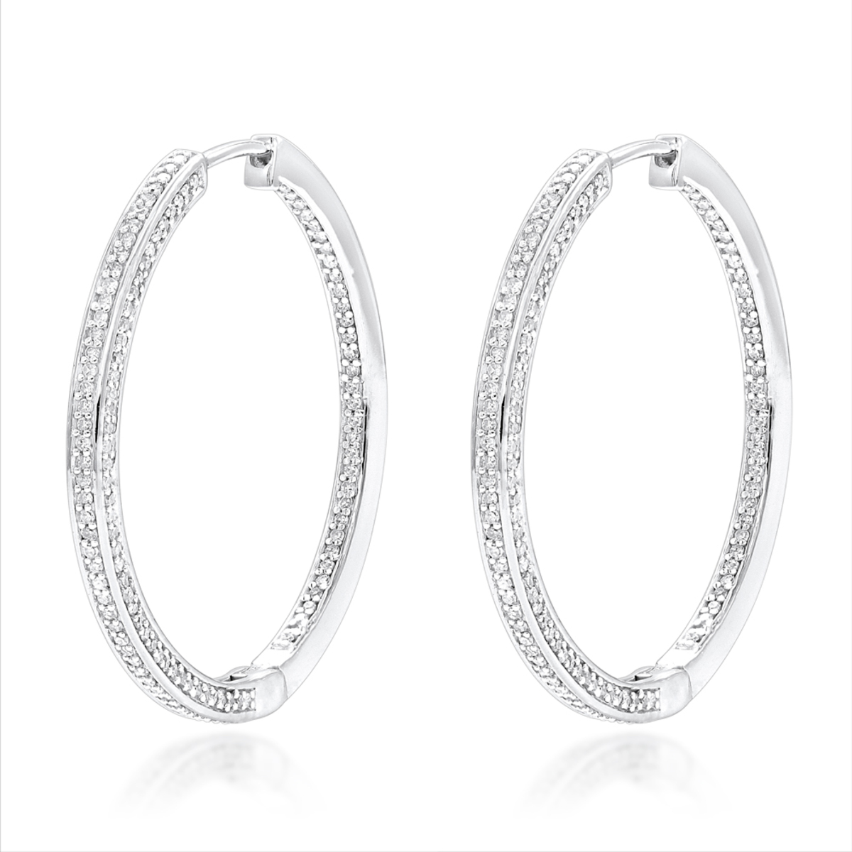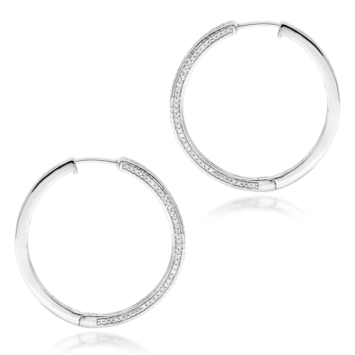 Pave Cut Diamond Hoop Earrings for Women | 14K Gold | Hinged Back | 1ct