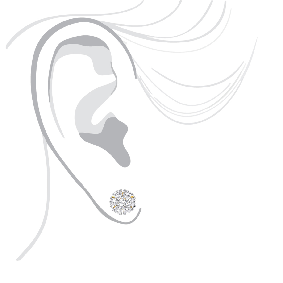 Pave Cut Diamond Stud Cluster Earrings for Men and Women | 14K Gold | Screw Back | 1ct
