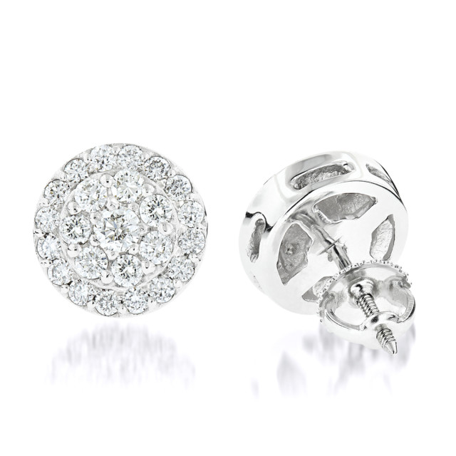 Pave Cut Diamond Stud Earrings for Men and Women | 14K Gold | Screw Back | 1.75ct