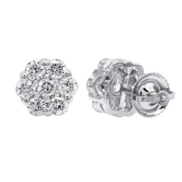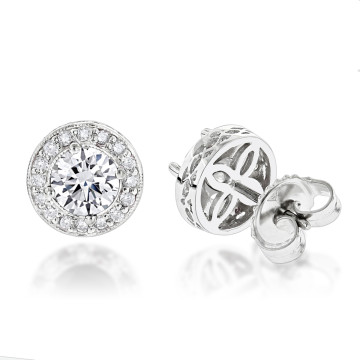 Pave Prong Halo Cut Diamond Stud Earrings for Men and Women | 14K Gold | Screw Back | 2.2ct